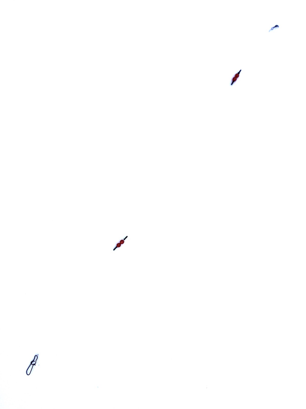 This is the only mono fishing rig we make and it's adjustable like our wire rigs. Use with any size leaders and still no tangles. Attach your hook leader between the double red beads. Position red beads to match your hook's leader lengths and prevent double hook tangles.